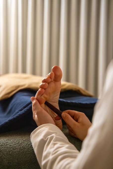 Mi metto in ascolto della tua energia e comincio con tocchi rilassanti che attraversano il corpo: dalla testa al petto, dalle gambe fino alle ginocchia. Da lì il rituale si concentra sui piedi, cuore della riflessologia, dove attraverso il contatto consapevole individuo tensioni, zone sensibili e blocchi energetici.